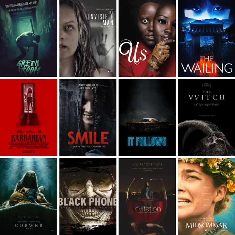 Movies Discussed:Green RoomCobwebThe Invisible ManThe Black PhoneUsThe InvitationThe WailingMidsommarBarbarianSmileIt FollowsThe WitchLinksInstagramOur Website